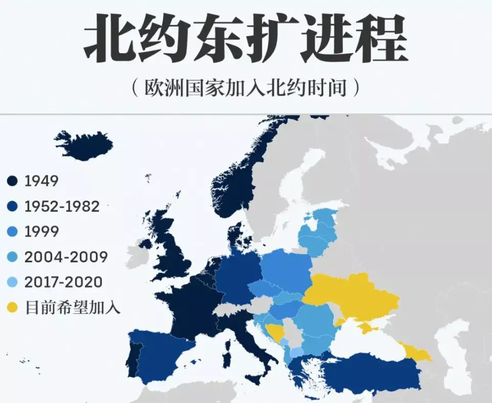 表面上看,北约的确在东扩,新加入的成员离俄国越来越近,但如果要深入追究的话,北约为啥能让那么多国家加入?所谓的北约东扩,到底是“北约扩张”,还是“有些国家加入北约”?——众所周知,这俩区别挺大的,千万别把这俩给混淆了。