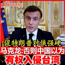 马克龙在香格里拉对话防务会议上说,如果允许俄罗斯不受约束地占领乌克兰的任何部分,那么"台湾会发生什么?"中国驻新加坡大使馆发帖称,将台湾问题与乌克兰问题相提并论是"不可接受的"。
