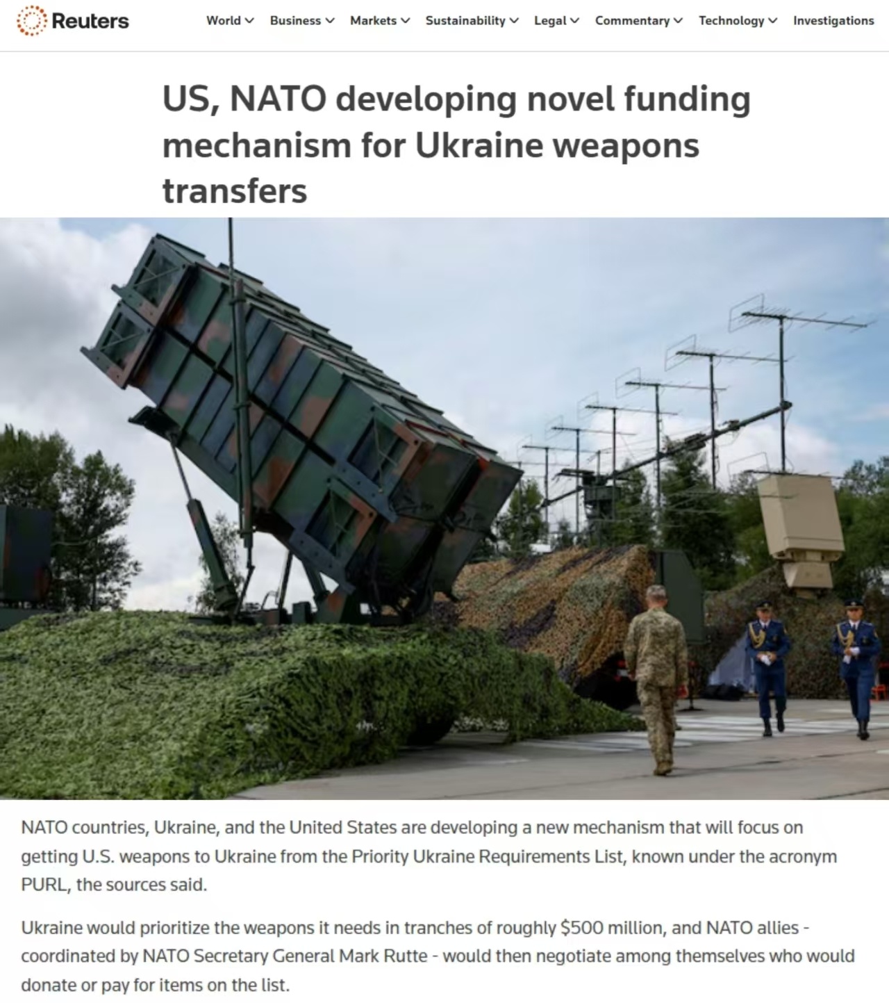 吕特对此表示欢迎,并指这是新框架下至关重要的第一步。 他在X称:“很高兴看到荷兰牵头,为美国向乌克兰提供的首批军事装备提供资金。”