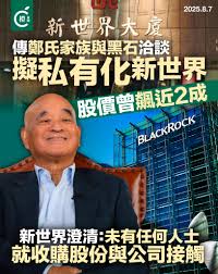 传郑氏家族与黑石洽谈 过百亿私有化新世界