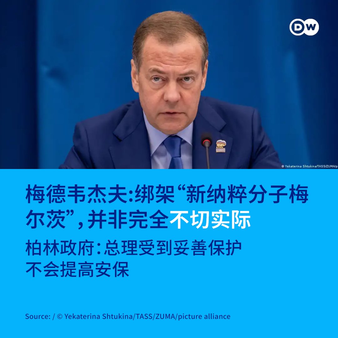 俄罗斯前总统、现任统一俄罗斯党主席、俄罗斯联邦安全会议副主席梅德韦杰夫近日对俄罗斯官媒塔斯社说,如果美国像在委内瑞拉那样动武,其他国家元首、政府首脑,包括德国总理梅尔茨(又译“默茨”),也可能遭到类似的绑架。