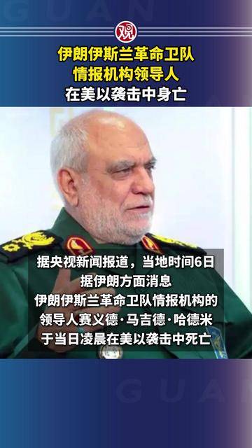 伊朗方面宣布,美以联军周一凌晨发动的空袭导致伊朗伊斯兰革命卫队情报机构的领导人哈德米(Majid Khademi)身亡